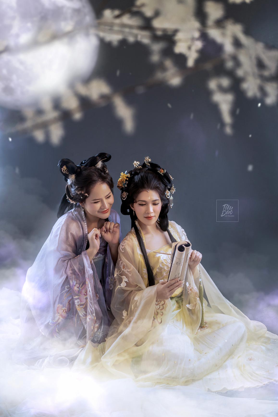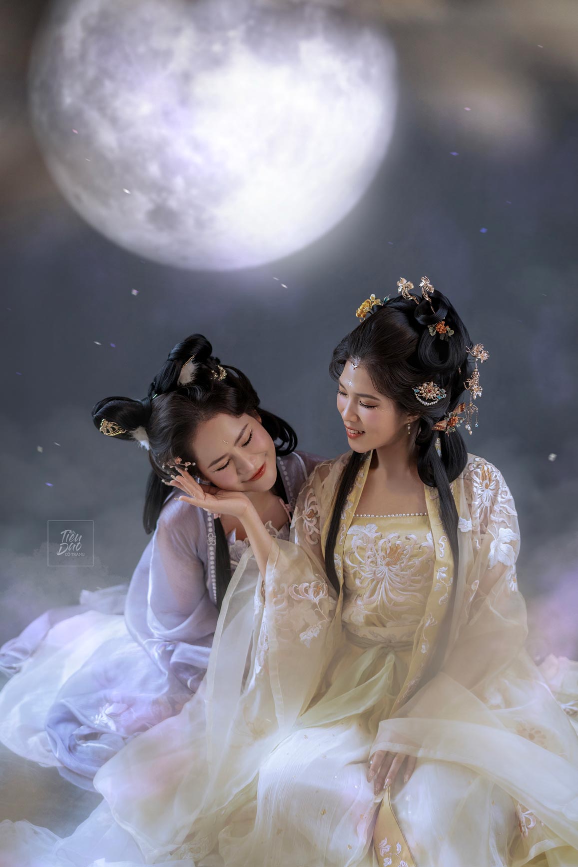 Bộ ảnh “Ánh Trăng Hán Phục” là một tuyệt phẩm nghệ thuật tinh tế, kết hợp hoàn hảo giữa chụp ảnh cổ trang và phong cách chụp ảnh nhóm với concept lấy cảm hứng từ ánh trăng đêm Trung thu – biểu tượng của đoàn viên, tình thân và vẻ đẹp dịu dàng của người con gái Á Đông. Dưới ánh sáng của vầng trăng tròn, hai nhân vật trong bộ hán phục truyền thống hiện lên thanh thoát, nhẹ nhàng, mang đậm phong vị cổ điển nhưng vẫn đầy sức sống và cảm xúc hiện đại. Bộ ảnh là minh chứng rõ nét cho sự sáng tạo không giới hạn trong nghệ thuật concept cổ trang, nơi nhiếp ảnh không chỉ ghi lại khoảnh khắc mà còn thổi hồn vào câu chuyện, tạo nên một không gian vừa thực vừa mộng, vừa cổ xưa vừa gần gũi.
